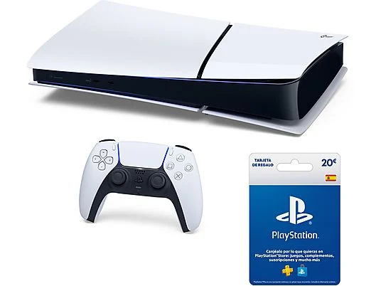 Consola – Sony PS5 Slim Digital Edition, 825 GB SSD, 4K, Chasis D, Blanco + Tarjeta PS Plus 20€