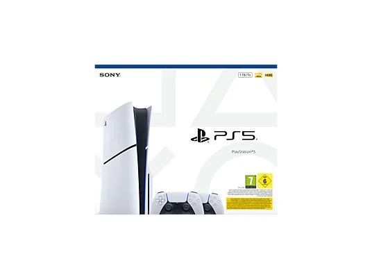 Consola – Sony PS5 Slim Standard, 1 TB SSD, 4K, 2 mandos DualSense, Chasis E, Blanco