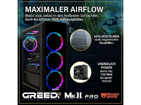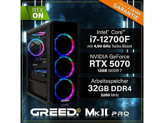 PC Gaming - GREED MK2 Pro Intel | Gaming Ordenador / Computer, Core™ i7-12700F, 32 GB RAM, 1 TB SSD, GeForce RTX™ 5070, Windows 11 Pro, Negro