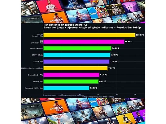PC Gaming - NITROPC Pack Bronze, AMD Ryzen 5 5655G (6 núcleos, 12 hilos | 3,90 GHz hasta 4,4 GHz), Monitor 24" 165Hz IPS, 16 GB RAM, 512 GB SSD, Radeon™ Onboard Graphics, Windows 11 Pro, Negro